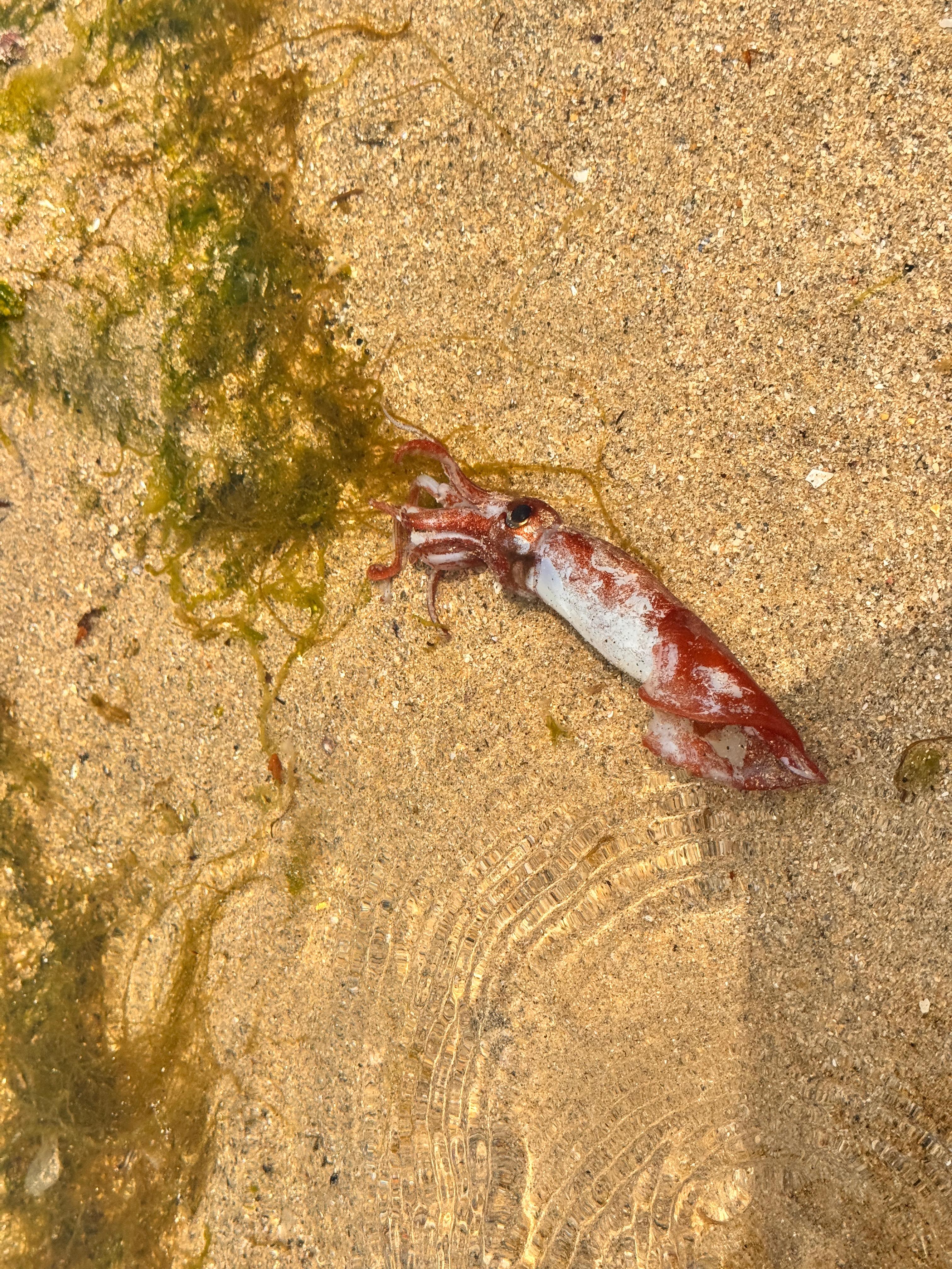 가장 기대했던 해산물 체집 시간! 🦀 준비물은 간단했어요. 장갑, 작은 바구니, 그리고 신발! 밀물 때를 피해서 썰물 때 바위 사이를 뒤지면, 소라, 게, 작은 조개들이 짠~ 하고 등장했어요. 한참을 몰입해서 체집하다 보니 시간 가는 줄 몰랐답니다.