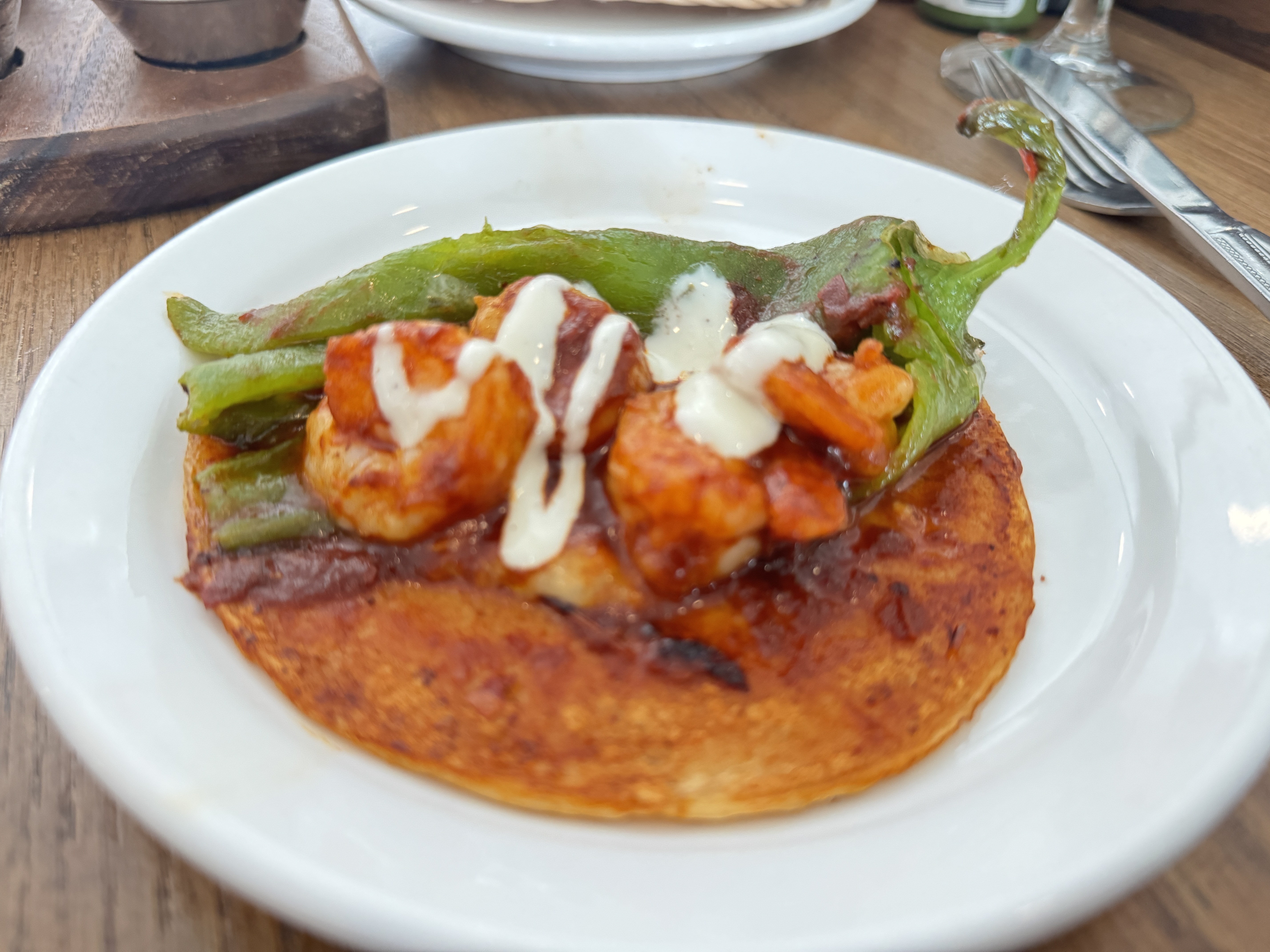 점심을 위해 주변을 검색하다가 현지인이 운영하는 타코 가게를 발견했습니다. 이곳에서 'Kalifornia' 타코와 드라이 와인을 주문했는데, 큼지막한 고추와 치즈, 새우의 조합이 일품이었습니다. 양이 조금 부족하여 추가로 주문한 버섯 타코는 담백한 버섯에 고수와 박하 잎의 향이 어우러져 이국적인 맛을 선사했습니다.