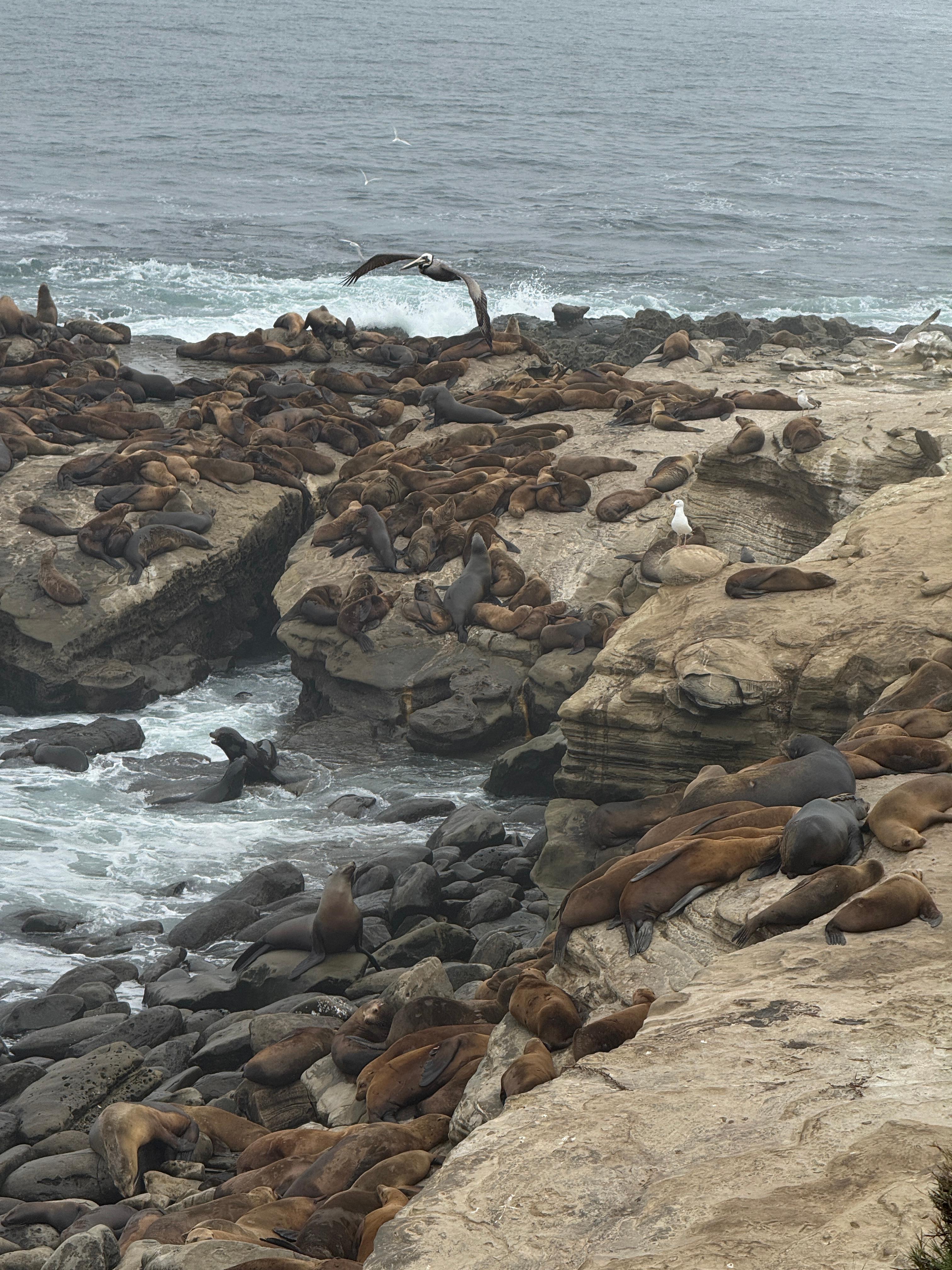 라호야 코브에 도착하자마자 펼쳐진 풍경은 말로 표현하기 어려울 정도로 아름다웠습니다. 해안을 따라 바다사자, 기러기, 펠리컨 등이 자연스럽게 어우러져 있는 모습은 마치 다큐멘터리의 한 장면 같았습니다. 특히 바다사자들의 귀여운 모습은 잊을 수 없는 추억이 되었습니다